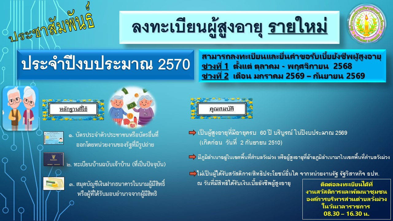 ประชาสัมพันธ์รับลงทะเบียนเบี้ยยังชีพผู้สูงอายุประจ...