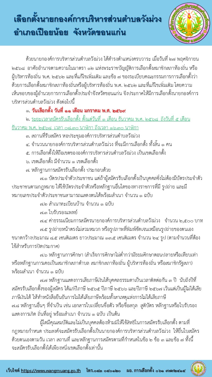 องค์การบริหารส่วนตำบลวังม่วง อำเภอเปือยน้อย จังหวัดขอนแก่น :www.wangmuang.go.th