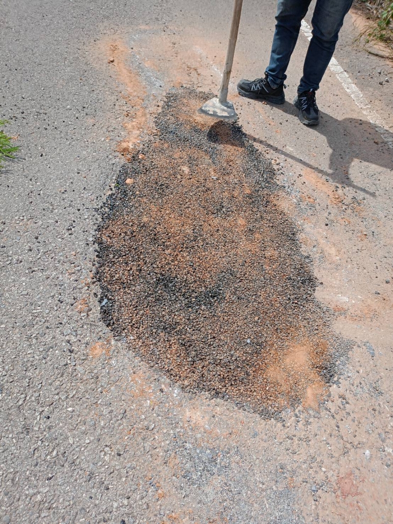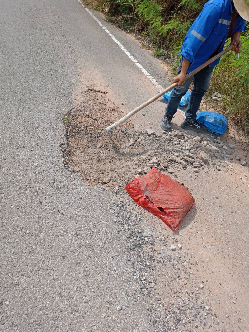 กองช่างออกซ่อมประผิวทางถนนลาดยาง สายวังม่วง - ห้วยแร่