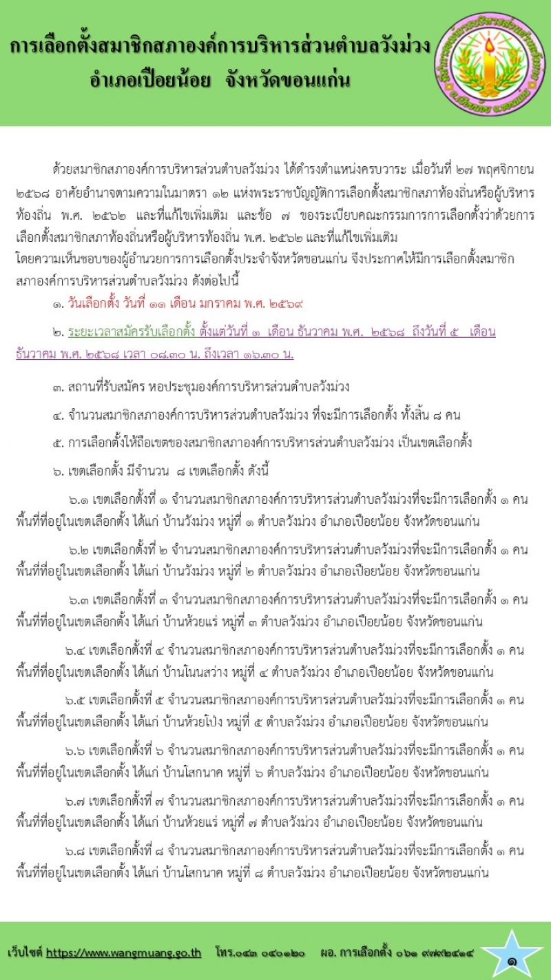 องค์การบริหารส่วนตำบลวังม่วง อำเภอเปือยน้อย จังหวัดขอนแก่น :www.wangmuang.go.th